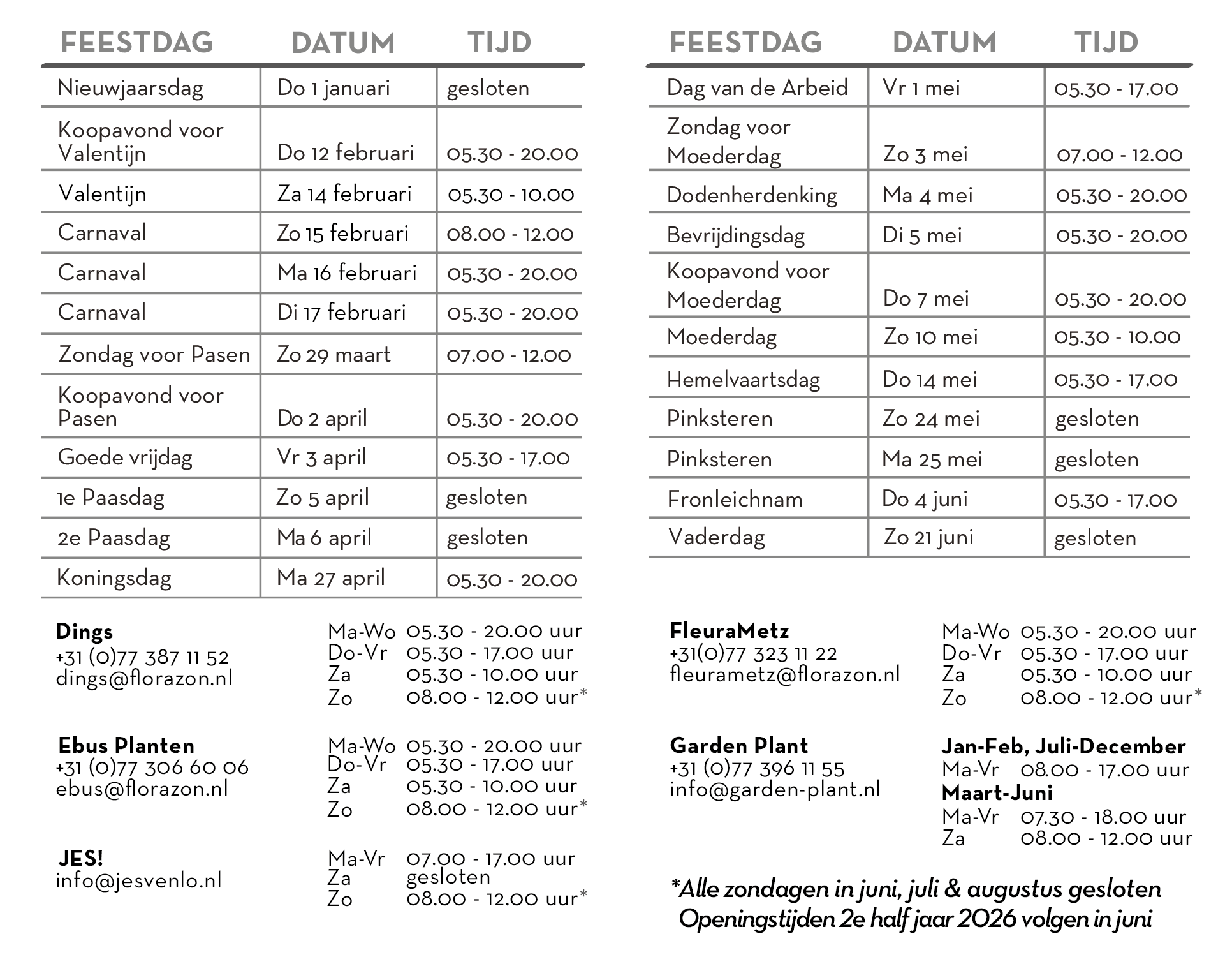 Bijzondere openingstijden